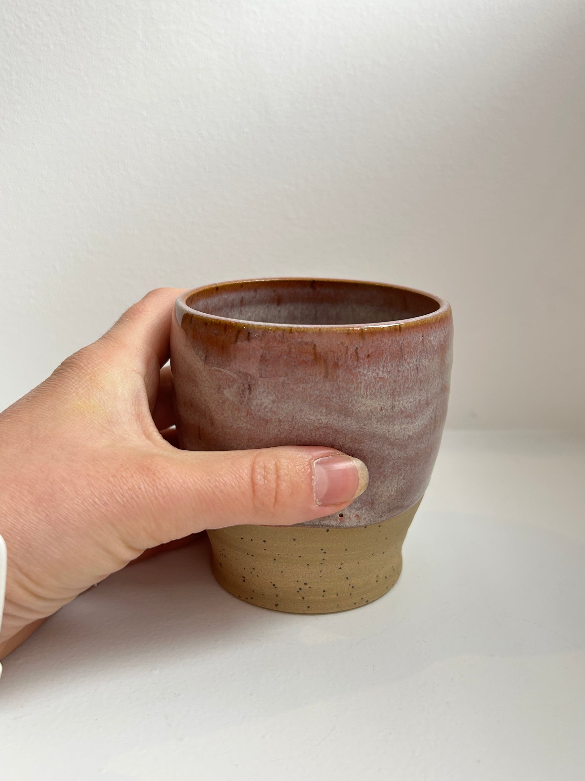 This pottery cup is totally handmade and goes through many processes and firings to get to the final product. The glaze look can differ from the original photos used which is to be embraced in its unique quality. These pieces are completely unique and organic in shape, since they are produced by hand there may be slight imperfections in the piece. They are the perfect gift for yourself of a loved one!